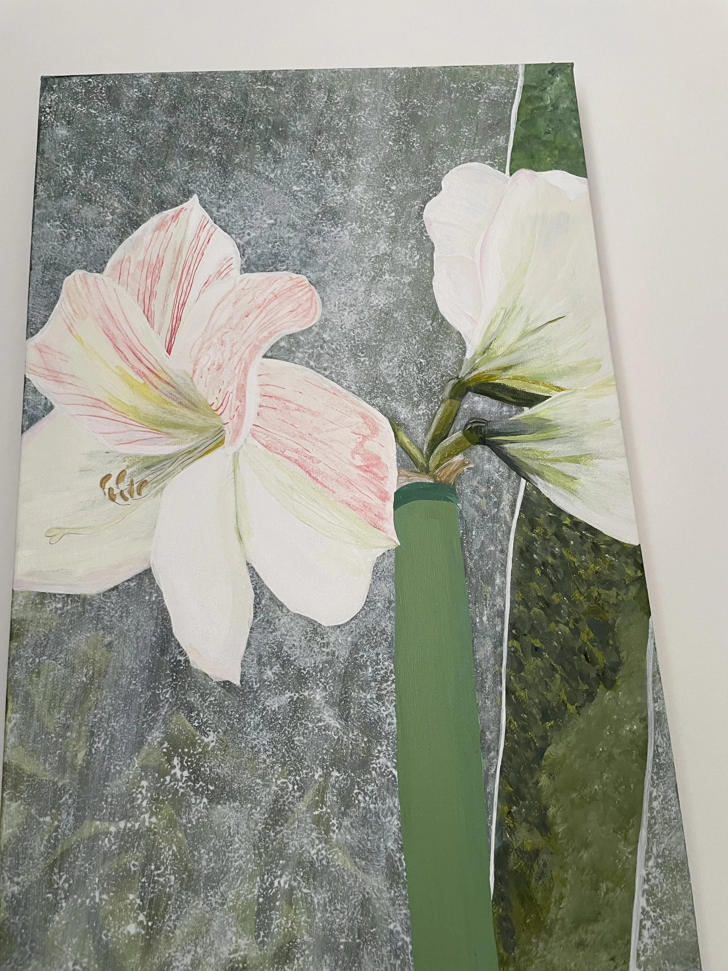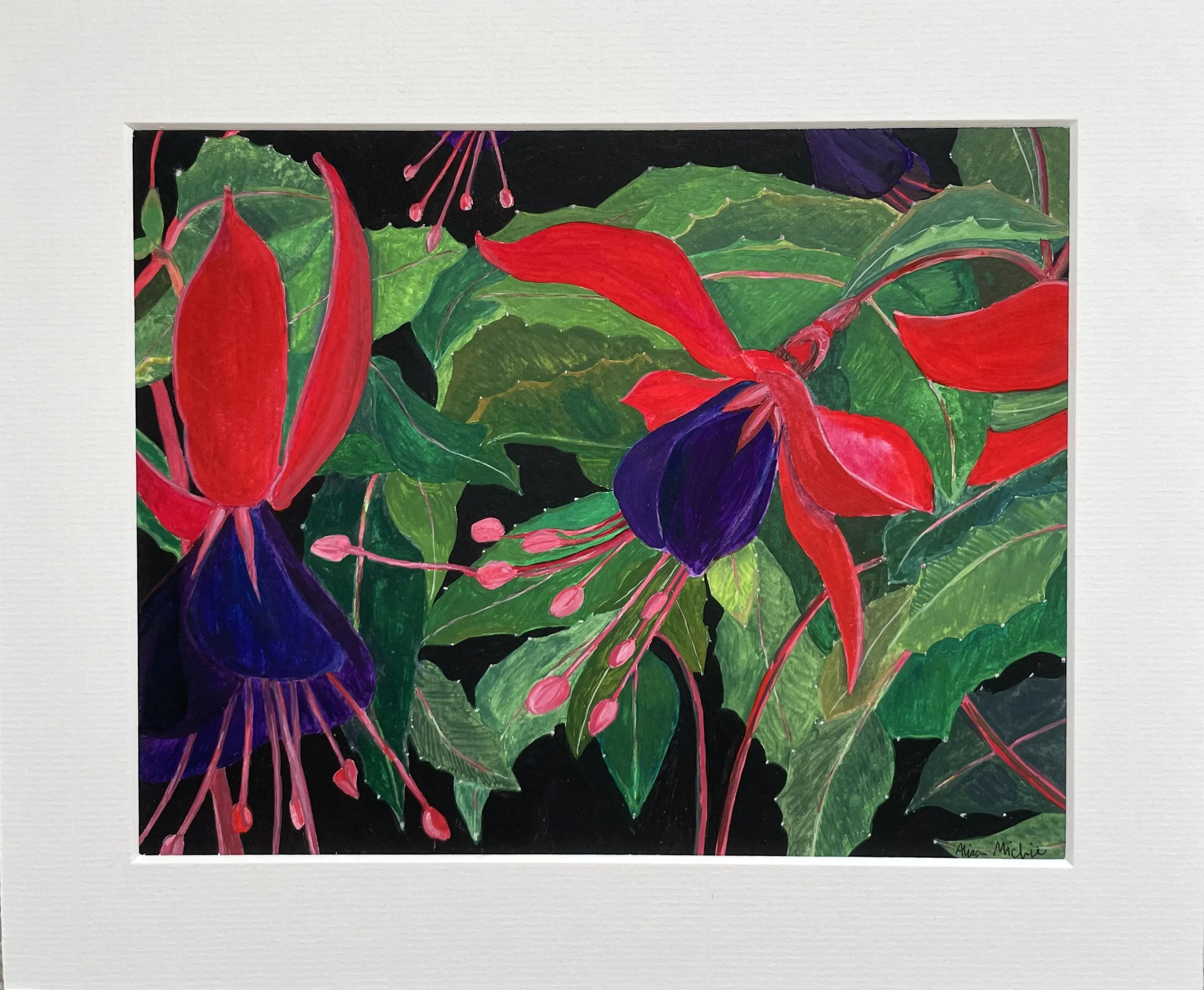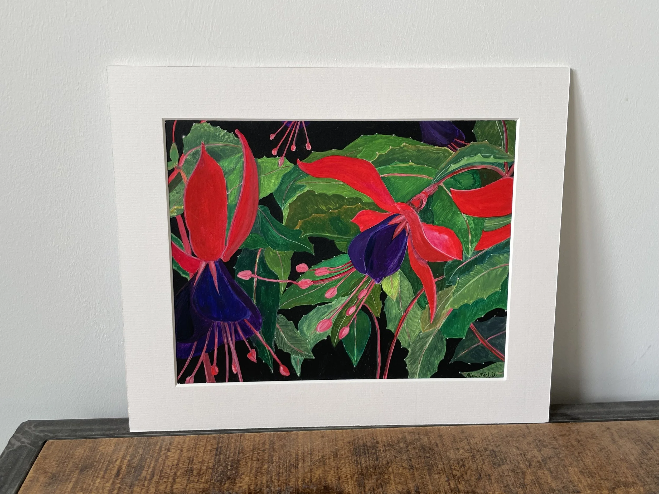 Pink and Green Roses £95.00 Zoom In Amaryllis £295.00 Aquilegia I £150.00 Aqualegia II £300.00 Oyster Catcher £150.00 I am not Symmetrical £650.00 Winter Window £25.00 Alstroemeria £45.00 Iris £70.00 Yellow Lillies £200.00 Fuschias £65.00 Majorcan Egret £45.00 Garden Fence £65.00 Blue Branded Moth £40.00 False Tiger Moth £40.00 French Autumn Market £75.00 Masts £800.00 Amaryllis Window £340.00